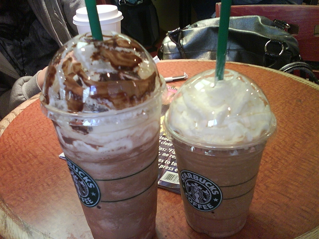 顺便照张去星巴克喝的Fappuccino + moka + Cream + chocolate ,不知道中国的星巴克有没有,反正超级好喝,有空去尝尝吧。