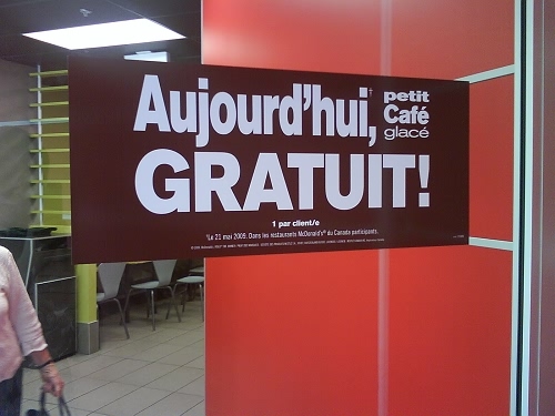 ^^好熟悉的法语~~~今天免费,小杯冰咖啡。
